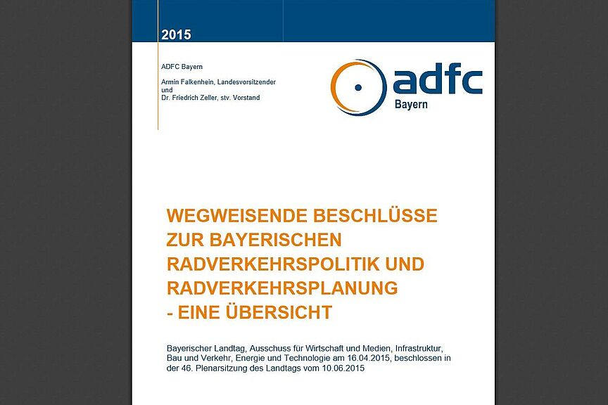 Der ADFC Bayern hat 2015 einen Beschlusstext zur bayerischen Radverkehrspolitik und Radverkehrsplanung für den Landtag geschaffen. Das Dokument finden Sie hier.